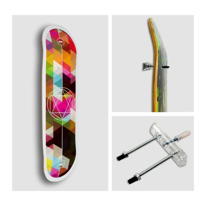 A instalação simples com um parafuso/bucha para drywall da Sk8ology significa que suas paredes não precisam de vários furos para pendurar cada painel. Os expositores Sk8ology oferecem dois tipos de instalação: travados ou fáceis de colocar/retirar, dependendo da sua situação.