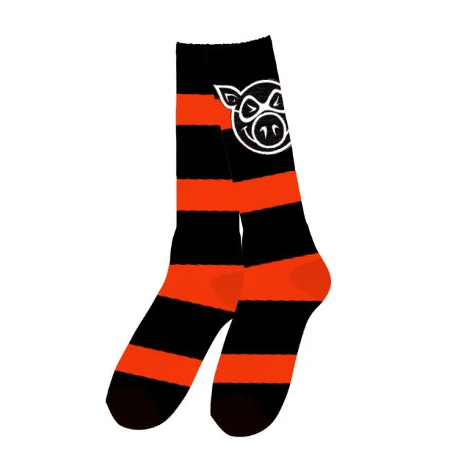 Meia Pig Striped - Preto/ Laranja