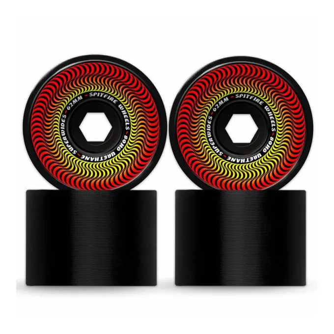 Esse modelo Superwides tem o seu Uretano de 80HD, com alta velocidade, macio e responsivo. Sua área de contato extra larga ligada a um núcleo interno leve e moldado por injeção permite um verdadeiro encaixe perfeito do rolamento e torna a velocidade mais suave e consistente em todos os lugares.