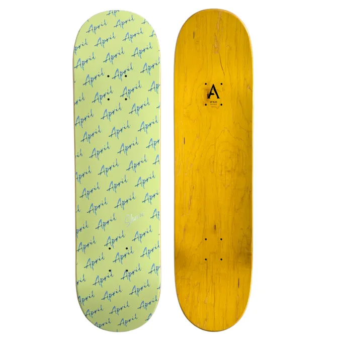 APRIL SKATEBOARDS, marca do atleta profissional australiano Shane O'Neill. Foi desenvolvida em 2019, teve bastante visibilidade nas Olimpíadas 2020 (2021) no Japão com a Fadinha Raissa Leal.
