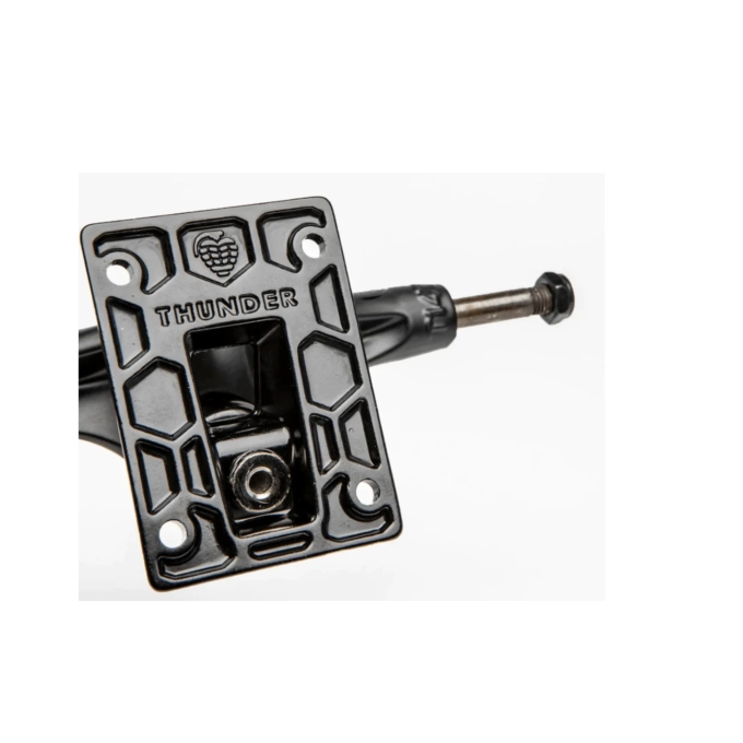 • Placa de base preta forjada com logotipo gravado.